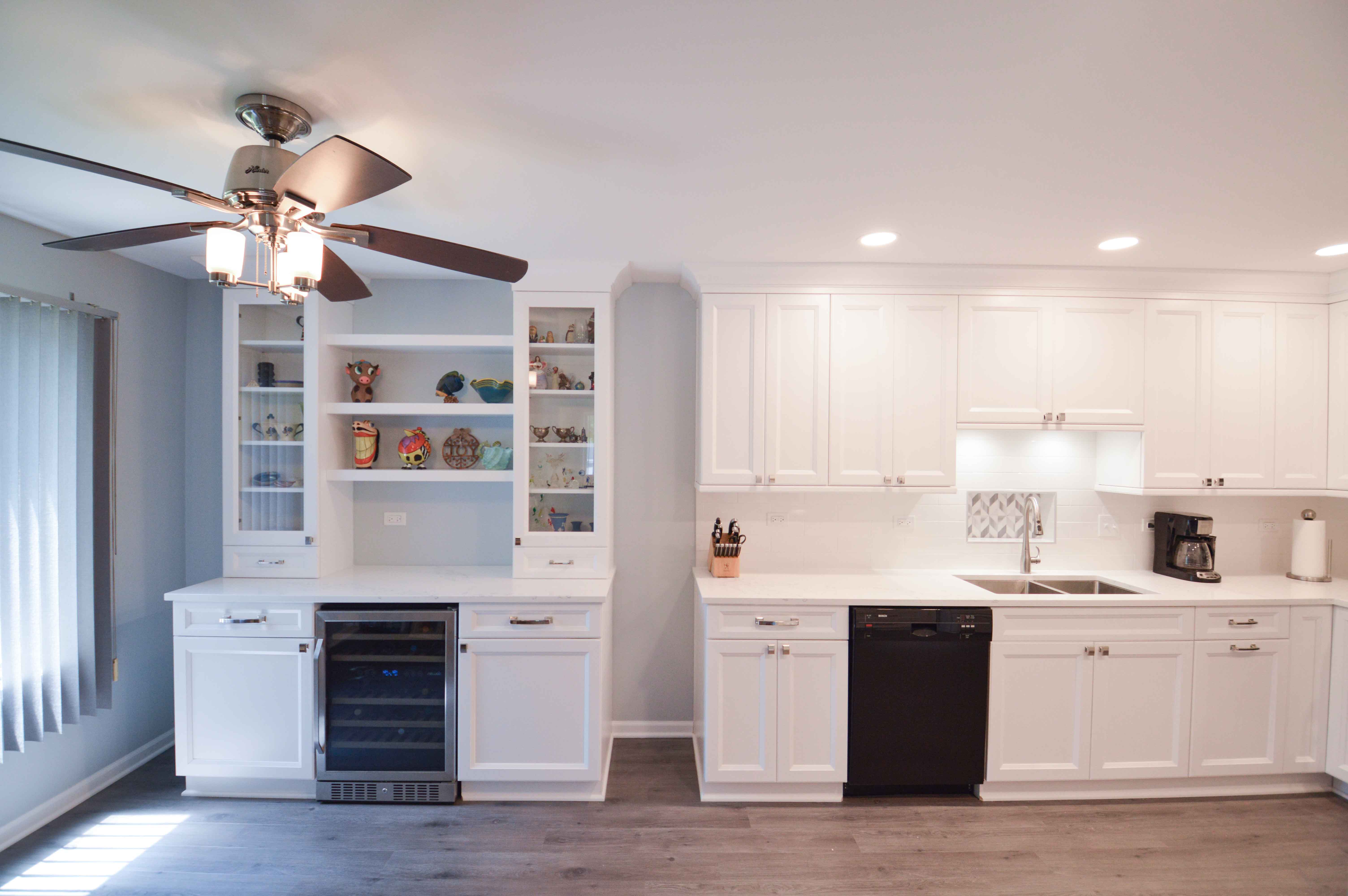 The bar was an added bonus when combined with the already improved storage and increased countertop space in the rest of the kitchen. Both the new cabinets and countertops helped brighten up the space, especially since the client opted to keep the original appliances.
