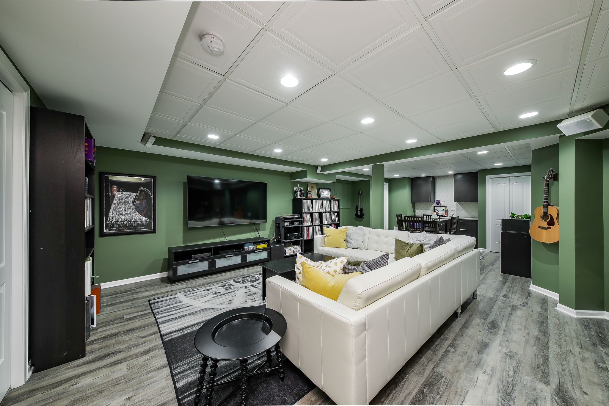 While making their basement the perfect hangout for the family, one of the most important factors was ensuring there was a dedicated space for their three dogs. The humans of the family may like to pretend that the basement is their domain, but everyone secretly knows it actually belongs to their three fur babies. To help make the space complete, our designer added two important details. The first was to create two alcoves with the cabinetry to match the rest of the basement. One alcove was for the large dog's crate. The second alcove, a little wider, housed two crates for the smaller dogs. Both were topped with quartz countertops for any work or prep space that may be needed.