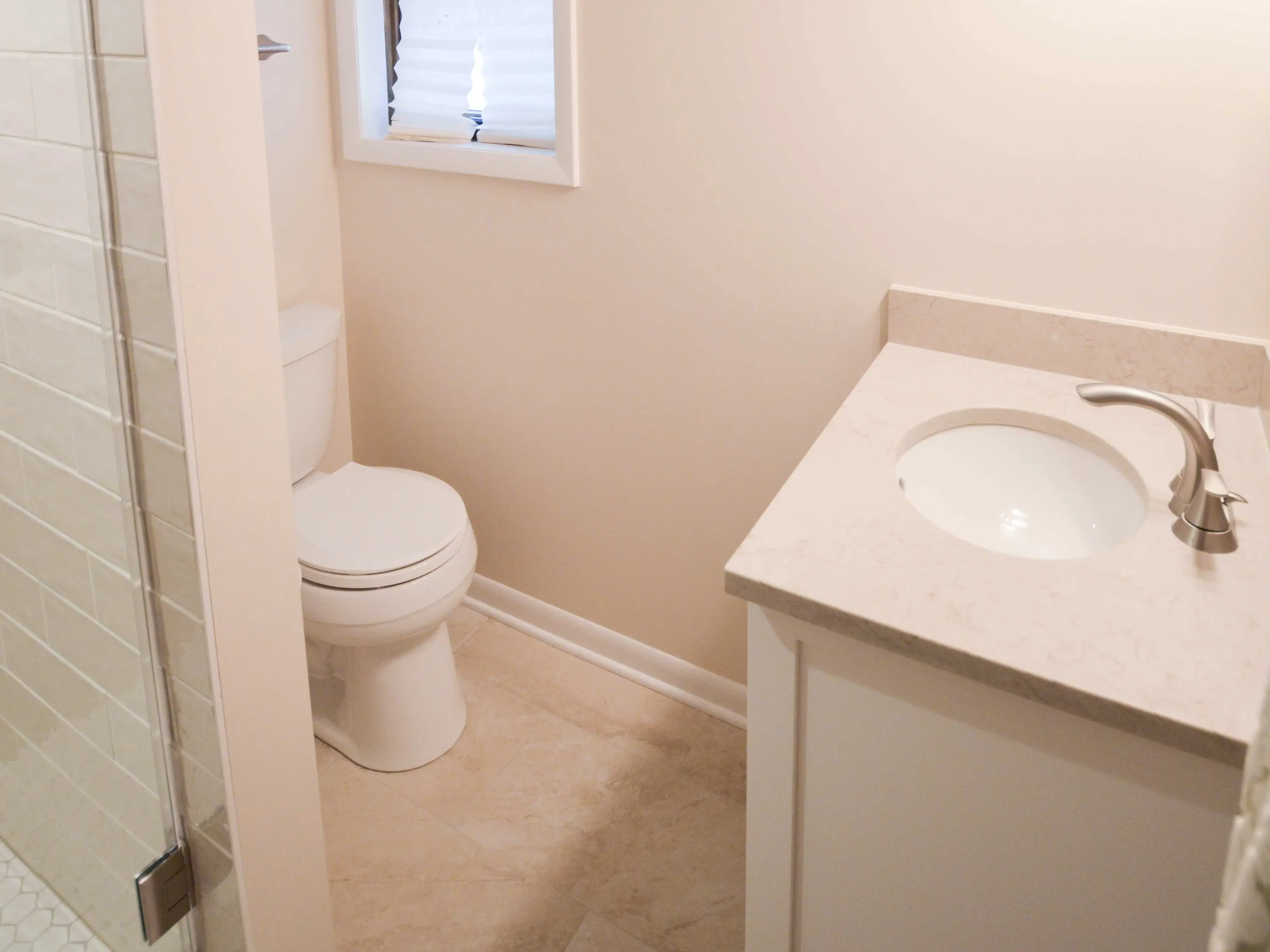- Primary Bathroom Countertops: Artic White with Hollywood Beveled edge