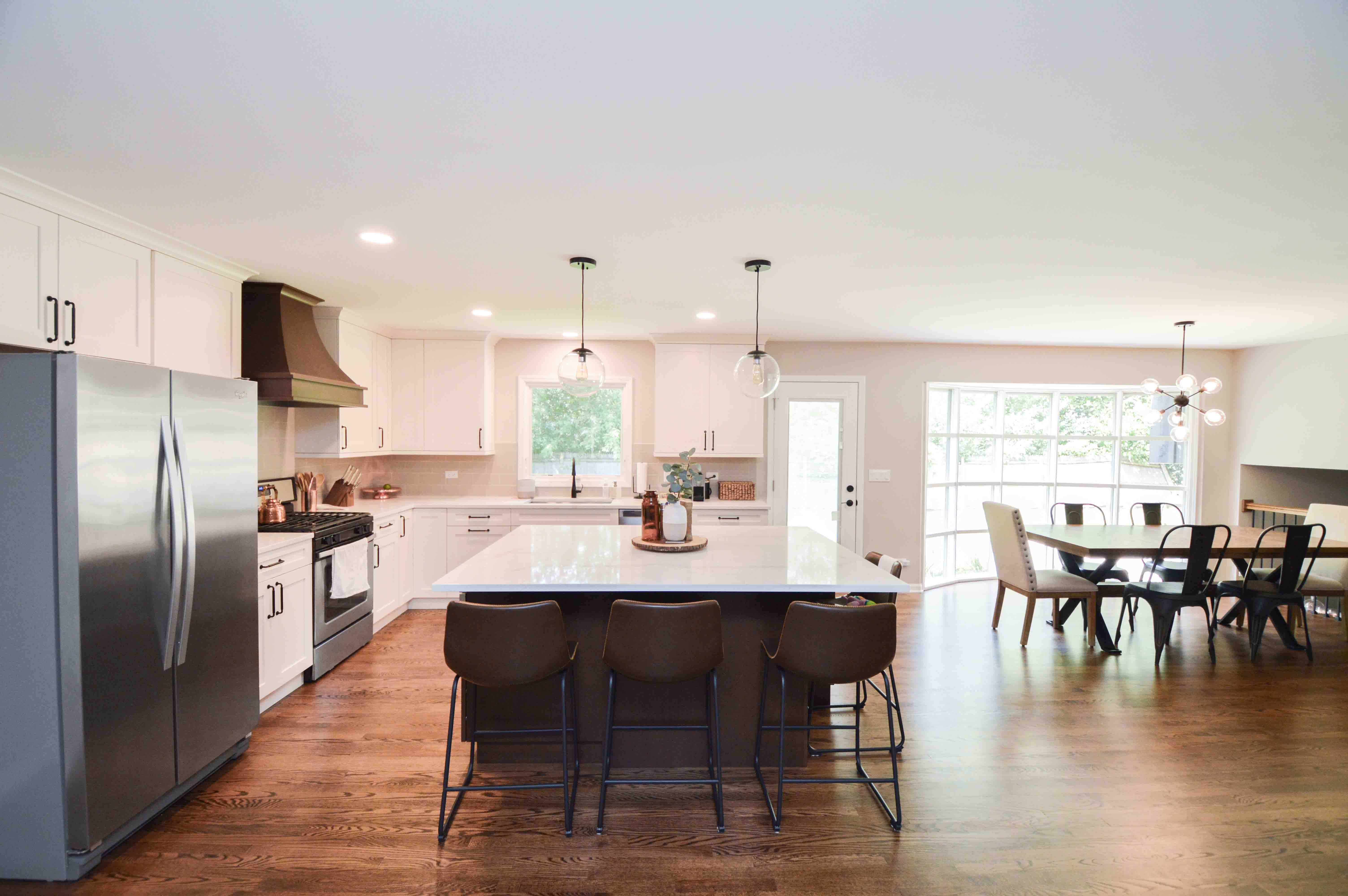 During their construction, these homeowners decided they wanted to add a bar in their family room to create a space welcoming to guests. Not only does it create a center for snacks and beverages, but it also helps improve the storage of their family room. Making this decision, however, also lead the family to make a few compromises in their kitchen design. For example, they reallocated funds that were going towards base drawers and pullout accessories to help cover part of the investment they were making for the bar.